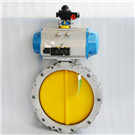 气动蝶阀气动蝶阀有开关型和调节型二种,蝶阀配行程限位开关、电磁阀、三联件及0.4-0.7MPa气源可实现开关操作,并送出二对无源触点信号指示阀门的开关。采用智能控制与定位时,与国产电气阀门定位器配套,输入4-20mADC信号及0.4-0.7MPa气源即可实现智能控制,实现对压力、流量、温度、液位等参数的调节。它是以压缩空气为动力,阀杆带动阀芯在阀体内转动90℃,可以实现全开--全闭的动作。该产品按其密封性能分为金属密封与软密封。具有结构紧凑,体积精小,运行可靠,密封性好,维修容易,安装方便,适应性强等优点。可广泛应用于石油、化工、轻工、制药、造纸、汽车等工业自动控制系统中作远距离集中控制或就地控制。 |