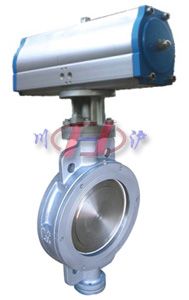 川沪牌气动三偏心蝶阀由活塞式气动执行机构及三偏心金属密封阀体组成,其结构采用三维编心原理设计,阀座采用硬软密封兼容的多层次结构,加工精湛,工艺先进。气动三偏心蝶阀可外配气动阀门定位器,输入控制信号(4-20mADC或1-5VDC)气源即可控制运转,亦可配行程限位开关、电磁阀、三联件及0.4-0.7MPa气源可实现开关操作,并送出二对无源触点信号指示阀门的开关。气动三偏心蝶阀由阀体、蝶板、多层次阀座、阀杆、传动机构等主要部件组成,属长寿命、节能型蝶阀。气动三偏心蝶阀被广泛地应用到冶金、电力、石油、化工、空气、煤气、可燃气体以及给排水等腐蚀性介质的管道上。